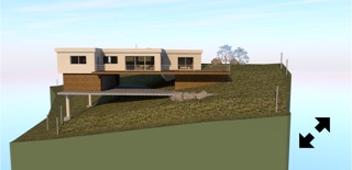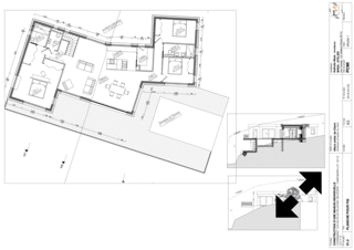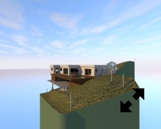 Les espaces de vie se posent sur les espaces de services et techniques avec une percée sur l’arrière du terrain donnant l’impression de légèreté à l’ensemble de cet édifice. Offrant ainsi la vue imprenable à ces habitants.